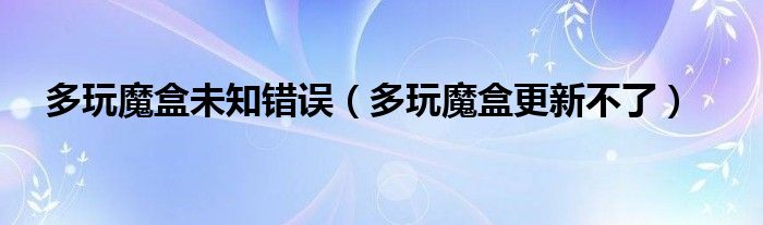 大家好,雨雨来为大家解答以上问题,多玩魔盒未知错误,多玩魔盒更新不了很多人还不知道,现在让我们一起来看看吧!