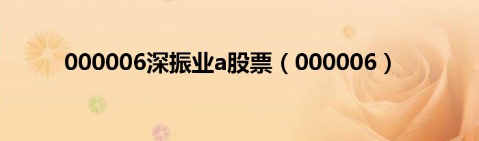 大家好,雨雨来为大家解答以上问题,000006深振业a股票,000006很多人还不知道,现在让我们一起来看看吧!