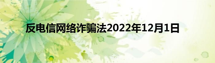 关于反电信网络诈骗法2022年12月1日这个很多人还不知道,今天菲菲来为大家解答以上的问题,现在让我们一起来看看吧!