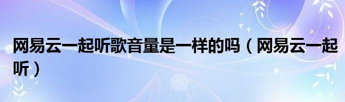 网易云一起听歌音量是一样的吗,网易云一起听很多人还不知道,乐乐来为大家解答以上问题,现在让我们一起来看看吧!