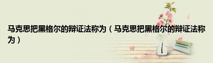 关于马克思把黑格尔的辩证法称为,马克思把黑格尔的辩证法称为这个很多人还不知道,今天菲菲来为大家解答以上的问题,现在让我们一起来看看吧!