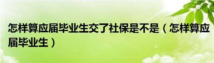 关于怎样算应届毕业生交了社保是不是,怎样算应届毕业生这个很多人还不知道,今天菲菲来为大家解答以上的问题,现在让我们一起来看看吧!