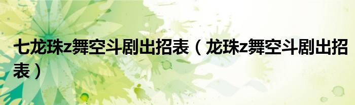 关于七龙珠z舞空斗剧出招表,龙珠z舞空斗剧出招表这个很多人还不知道,今天菲菲来为大家解答以上的问题,现在让我们一起来看看吧!