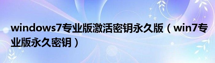 关于windows7专业版激活密钥永久版,win7专业版永久密钥这个很多人还不知道,今天菲菲来为大家解答以上的问题,现在让我们一起来看看吧!