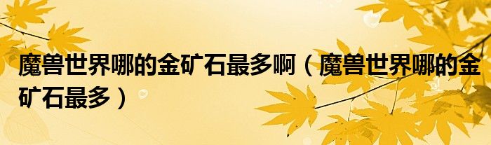 关于魔兽世界哪的金矿石最多啊,魔兽世界哪的金矿石最多这个很多人还不知道,今天菲菲来为大家解答以上的问题,现在让我们一起来看看吧!