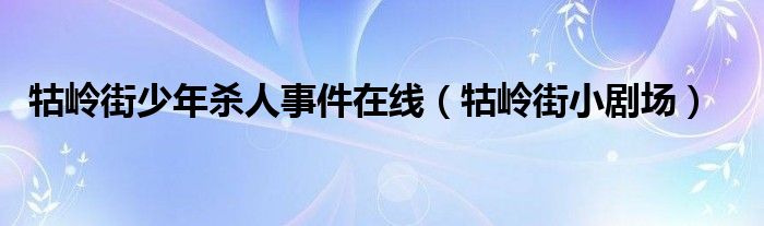 牯岭街少年杀人事件在线,牯岭街小剧场这个很多人还不知道,小飞来为大家解答以上的问题。现在让我们一起来看看吧!