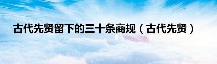 关于古代先贤留下的三十条商规,古代先贤这个很多人还不知道,今天菲菲来为大家解答以上的问题,现在让我们一起来看看吧!