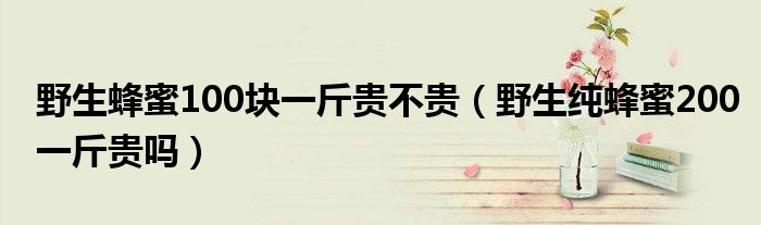 大家好,小晋来为大家解答以下问题,关于野生蜂蜜100块一斤贵不贵,野生纯蜂蜜200一斤贵吗很多人还不知道,今天让我们一起来看看吧!