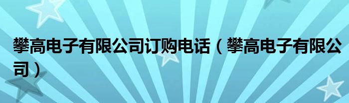攀高电子有限公司订购电话,攀高电子有限公司很多人还不知道,乐乐来为大家解答以上问题,现在让我们一起来看看吧!