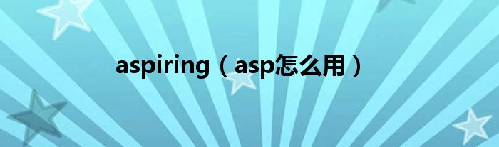 大家好,小飞来为大家解答以上问题,aspiring,asp怎么用很多人还不知道,现在让我们一起来看看吧!