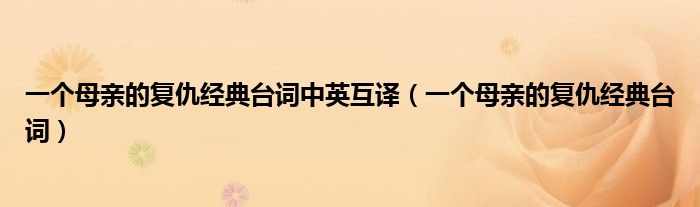 大家好,小晋来为大家解答以下问题,关于一个母亲的复仇经典台词中英互译,一个母亲的复仇经典台词很多人还不知道,今天让我们一起来看看吧!