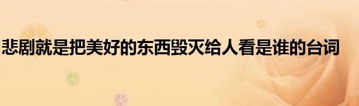 关于悲剧就是把美好的东西毁灭给人看是谁的台词这个很多人还不知道,今天菲菲来为大家解答以上的问题,现在让我们一起来看看吧!