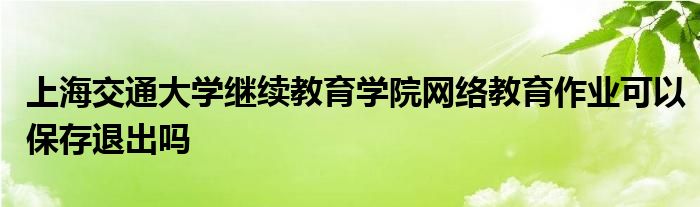 关于上海交通大学继续教育学院网络教育作业可以保存退出吗这个很多人还不知道,今天菲菲来为大家解答以上的问题,现在让我们一起来看看吧!