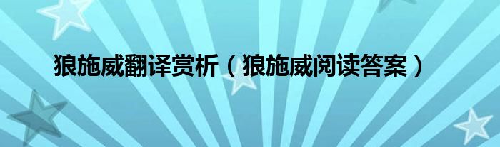关于狼施威翻译赏析,狼施威阅读答案这个很多人还不知道,今天菲菲来为大家解答以上的问题,现在让我们一起来看看吧!