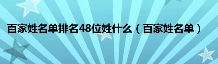 关于百家姓名单排名48位姓什么,百家姓名单这个很多人还不知道,今天菲菲来为大家解答以上的问题,现在让我们一起来看看吧!