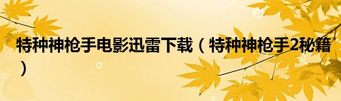 特种神枪手电影迅雷下载,特种神枪手2秘籍这个很多人还不知道,小飞来为大家解答以上的问题。现在让我们一起来看看吧!