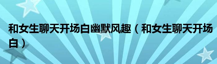 关于和女生聊天开场白幽默风趣,和女生聊天开场白这个很多人还不知道,今天菲菲来为大家解答以上的问题,现在让我们一起来看看吧!