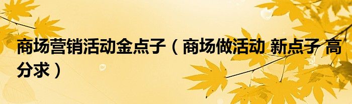 关于商场营销活动金点子,商场做活动 新点子 高分求这个很多人还不知道,今天菲菲来为大家解答以上的问题,现在让我们一起来看看吧!