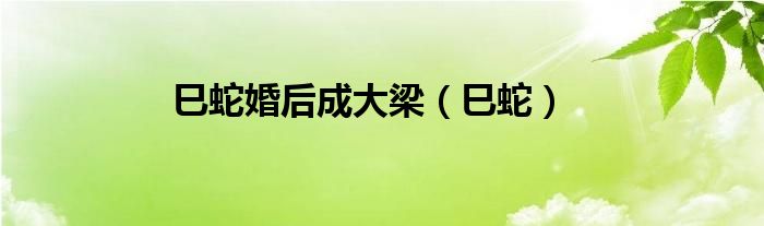关于巳蛇婚后成大梁,巳蛇这个很多人还不知道,今天菲菲来为大家解答以上的问题,现在让我们一起来看看吧!