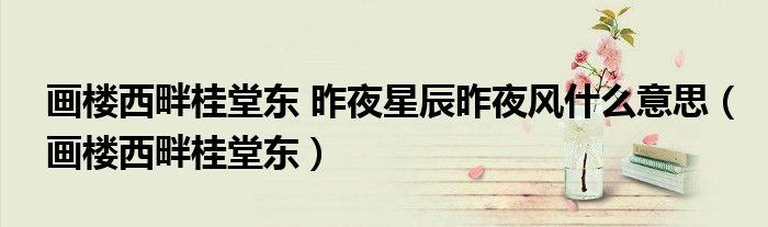 大家好,小晋来为大家解答以下问题,关于画楼西畔桂堂东 昨夜星辰昨夜风什么意思,画楼西畔桂堂东很多人还不知道,今天让我们一起来看看吧!