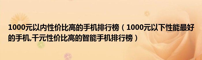 大家好,小常来为大家解答以上问题。1000元以内性价比高的手机排行榜,1000元以下性能最好的手机,千元性价比高的智能手机排行榜很多人还不知道,现在让我们一起来看看吧!