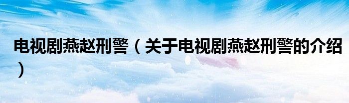 电视剧燕赵刑警(关于电视剧燕赵刑警的介绍)