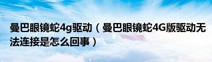 大家好,小常来为大家解答以上问题。曼巴眼镜蛇4g驱动,曼巴眼镜蛇4G版驱动无法连接是怎么回事很多人还不知道,现在让我们一起来看看吧!