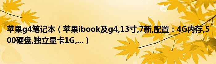 大家好,小常来为大家解答以上问题。苹果g4笔记本,苹果ibook及g4,13寸,7新,配置:4G内存,500硬盘,独立显卡1G,...很多人还不知道,现在让我们一起来看看吧!