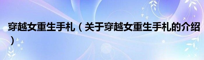 大家好,今天小乐来为大家解答以上的问题。穿越女重生手札,关于穿越女重生手札的介绍很多人还不知道,现在让我们一起来看看吧!
