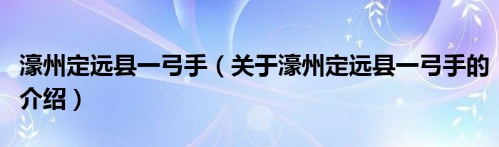 大家好,今天小乐来为大家解答以上的问题。濠州定远县一弓手,关于濠州定远县一弓手的介绍很多人还不知道,现在让我们一起来看看吧!