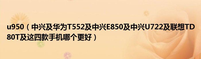 大家好,小常来为大家解答以上问题。u950,中兴及华为T552及中兴E850及中兴U722及联想TD80T及这四款手机哪个更好很多人还不知道,现在让我们一起来看看吧!