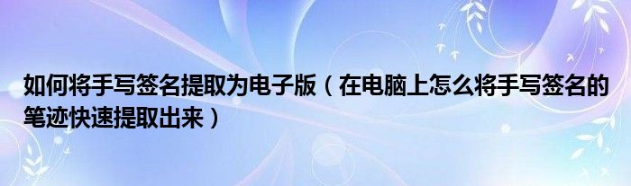大家好,今天小悦来为大家解答以上问题。如何将手写签名提取为电子版,在电脑上怎么将手写签名的笔迹快速提取出来很多人还不知道,现在让我们一起来看看吧!