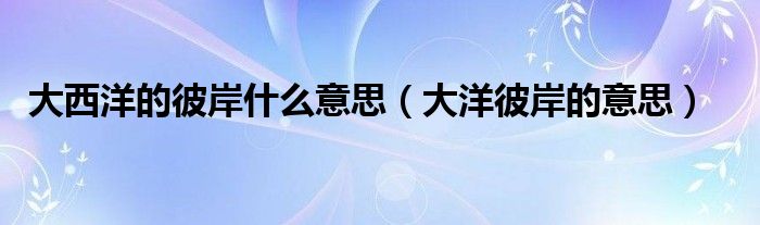 大家好,小晋来为大家解答以下问题,关于大西洋的彼岸什么意思,大洋彼岸的意思很多人还不知道,今天让我们一起来看看吧!