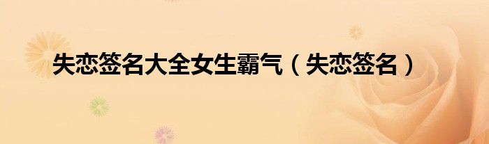 大家好,雨雨来为大家解答以上问题,失恋签名大全女生霸气,失恋签名很多人还不知道,现在让我们一起来看看吧!