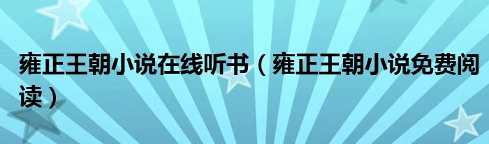关于雍正王朝小说在线听书,雍正王朝小说免费阅读这个很多人还不知道,今天菲菲来为大家解答以上的问题,现在让我们一起来看看吧!