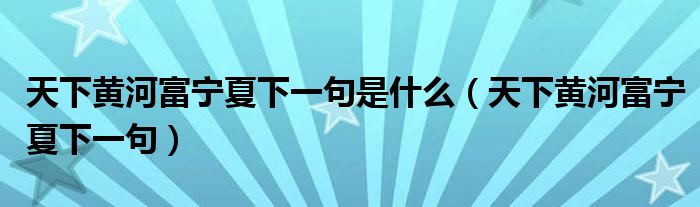 关于天下黄河富宁夏下一句是什么,天下黄河富宁夏下一句这个很多人还不知道,今天菲菲来为大家解答以上的问题,现在让我们一起来看看吧!
