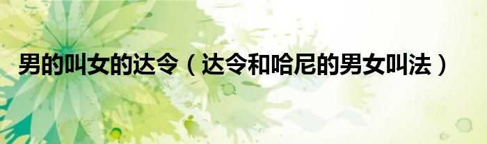 大家好,小晋来为大家解答以下问题,关于男的叫女的达令,达令和哈尼的男女叫法很多人还不知道,今天让我们一起来看看吧!