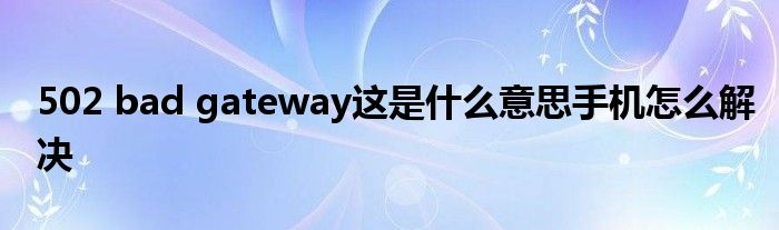 关于502 bad gateway这是什么意思手机怎么解决这个很多人还不知道,今天菲菲来为大家解答以上的问题,现在让我们一起来看看吧!