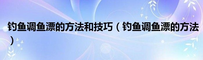 关于钓鱼调鱼漂的方法和技巧,钓鱼调鱼漂的方法这个很多人还不知道,今天菲菲来为大家解答以上的问题,现在让我们一起来看看吧!