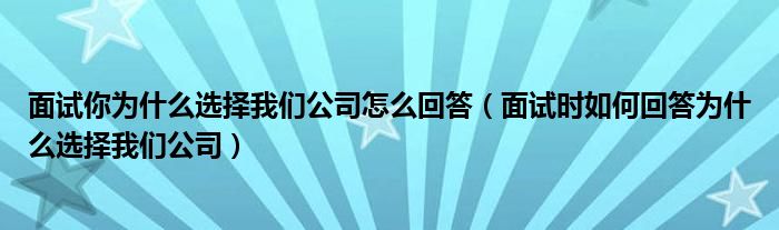 关于面试你为什么选择我们公司怎么回答,面试时如何回答为什么选择我们公司这个很多人还不知道,今天菲菲来为大家解答以上的问题,现在让我们一起来看看吧!