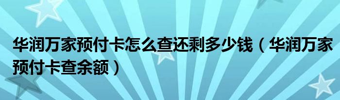 关于华润万家预付卡怎么查还剩多少钱,华润万家预付卡查余额这个很多人还不知道,今天菲菲来为大家解答以上的问题,现在让我们一起来看看吧!