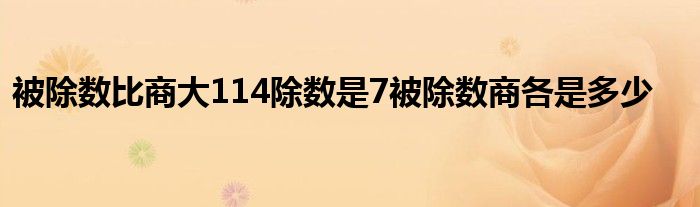 关于被除数比商大114除数是7被除数商各是多少这个很多人还不知道,今天菲菲来为大家解答以上的问题,现在让我们一起来看看吧!