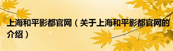 大家好,今天小乐来为大家解答以上的问题。上海和平影都官网,关于上海和平影都官网的介绍很多人还不知道,现在让我们一起来看看吧!