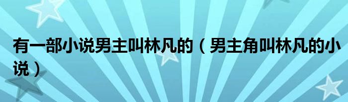 有一部小说男主叫林凡的(男主角叫林凡的小说)
