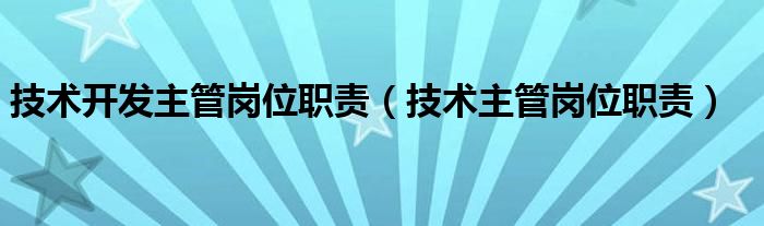 关于技术开发主管岗位职责,技术主管岗位职责这个很多人还不知道,今天菲菲来为大家解答以上的问题,现在让我们一起来看看吧!