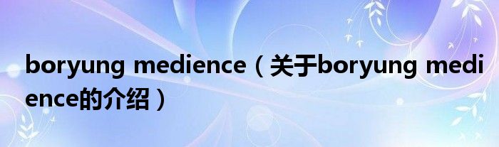 大家好,今天小乐来为大家解答以上的问题。boryung medience,关于boryung medience的介绍很多人还不知道,现在让我们一起来看看吧!