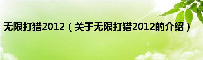 大家好,今天小乐来为大家解答以上的问题。无限打猎2012,关于无限打猎2012的介绍很多人还不知道,现在让我们一起来看看吧!