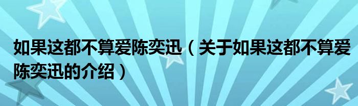 大家好,今天小乐来为大家解答以上的问题。如果这都不算爱陈奕迅,关于如果这都不算爱陈奕迅的介绍很多人还不知道,现在让我们一起来看看吧!