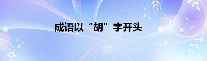 关于成语以“胡”字开头这个很多人还不知道,今天菲菲来为大家解答以上的问题,现在让我们一起来看看吧!