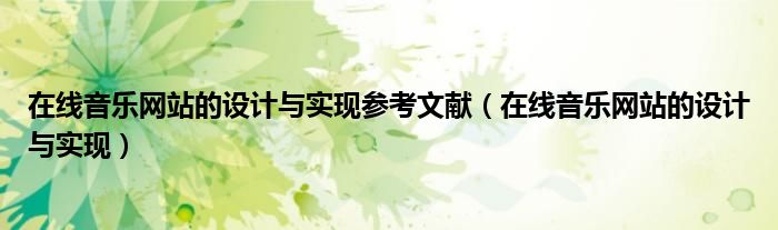 关于在线音乐网站的设计与实现参考文献,在线音乐网站的设计与实现这个很多人还不知道,今天菲菲来为大家解答以上的问题,现在让我们一起来看看吧!
